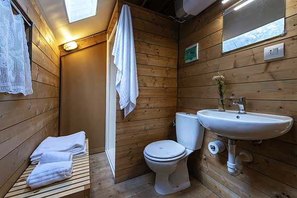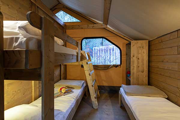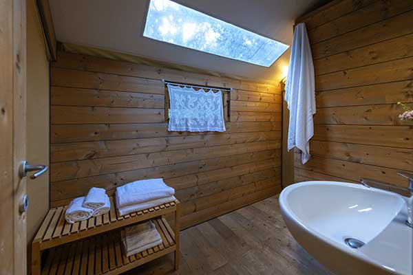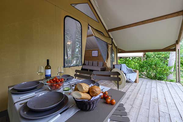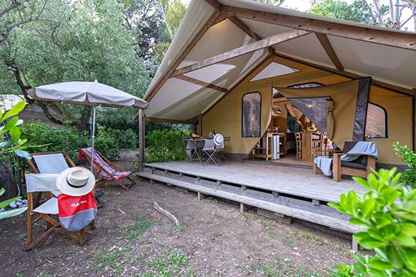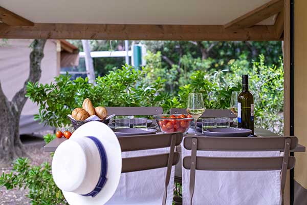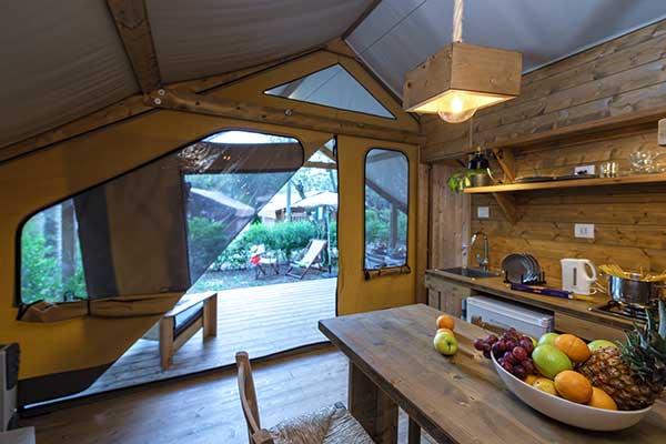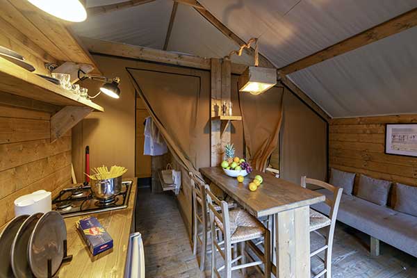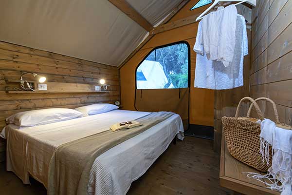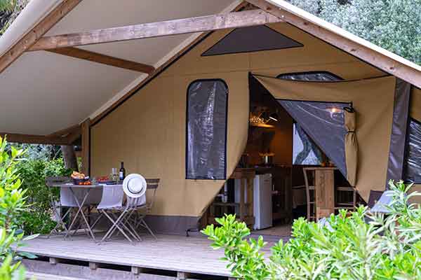 Der glamouröse Urlaub im Zelt von Molino a Fuoco Camping Village für die ganze Familie. Diese Version bietet allen Komforts für Paare mit Kindern in einer ländlichen Atmosphäre. 3 Zimmer, Bad, Veranda und Garten. Tiere nicht erlaubt